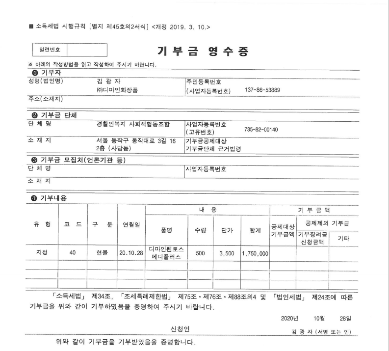 ¿ì¸® °æÂûÀκ¹Áö»çȸÀûÇùµ¿Á¶ÇÕÀº ÁöÁ¤±âºÎ±Ý´Üü·Î¼ ±âºÎÀڵ鲲¼ ±âºÎ(ÈÄ¿ø±Ý, ¹°Ç° µî)ÇØ Áֽô Àç¿ø°ú ÀÚü »ç¾÷À¸·Î ¿î¿µµÇ°í ÀÖÀ¸¸ç, ¿¬¸»Á¤»ê½Ã ±âºÎ±Ý ¿µ¼öÁõÀ» ¹ß±ÞÇØ µå¸®°í ÀÖ½À´Ï´Ù.¡¸¹ýÀμ¼¹ý ½ÃÇà·É¡¹ Á¦39Á¶ Á¦6Ç×, ¡¸¹ýÀμ¼¹ý ½ÃÇà±ÔÄ¢¡¹ Á¦19Á¶ Á¦1Ç׿¡ µû¶ó 2020³â ¿¬°£ ±âºÎ±Ý ¸ð±Ý¾× Ȱ¿ë½ÇÀû ¸í¼¼¼¸¦ °ø°³ÇÕ´Ï´Ù.¸Å³â ±âºÎ±Ý ¸ð±Ý¾× ¹× Ȱ¿ë½ÇÀûÀ» Çùȸ ȨÆäÀÌÁö¿Í ±¹¼¼Ã» ȨÅýº¿¡ °ø°³Çϰí ÀÖÀ¸¸ç, Åõ¸íÇÑ ¿î¿µÀ¸·Î Á¶ÇÕ ¹ßÀüÀ» À§ÇØ ³ë·ÂÇϰí ÀÖ½À´Ï´Ù.¾ÕÀ¸·Îµµ Áö¼ÓÀûÀÎ °ü½É°ú °Ý·Á ºÎʵ右´Ï´Ù.¼¼ºÎ³»¿ªÀº ÷ºÎÆÄÀÏÀ» ÂüÁ¶ ÇÏ½Ã¸é µË´Ï´Ù.°¨»çÇÕ´Ï´Ù.